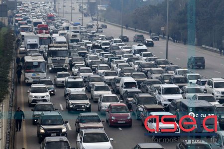 Bakının bir sıra yollarında nəqliyyatın hərəkətində sıxlıq yaranıb.