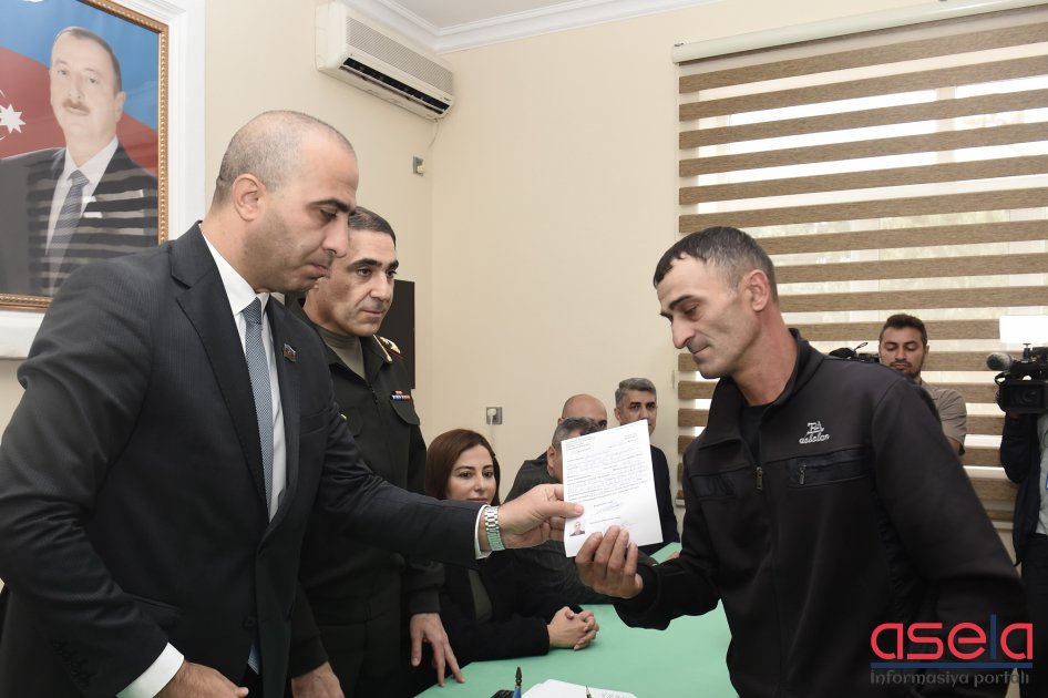 Ədliyyə Nazirliyinin nümayəndələri cəzaçəkmə müəssisələrində əfv edilmiş şəxslərə azad olunmaları barədə sənədləri təqdim edirlər.