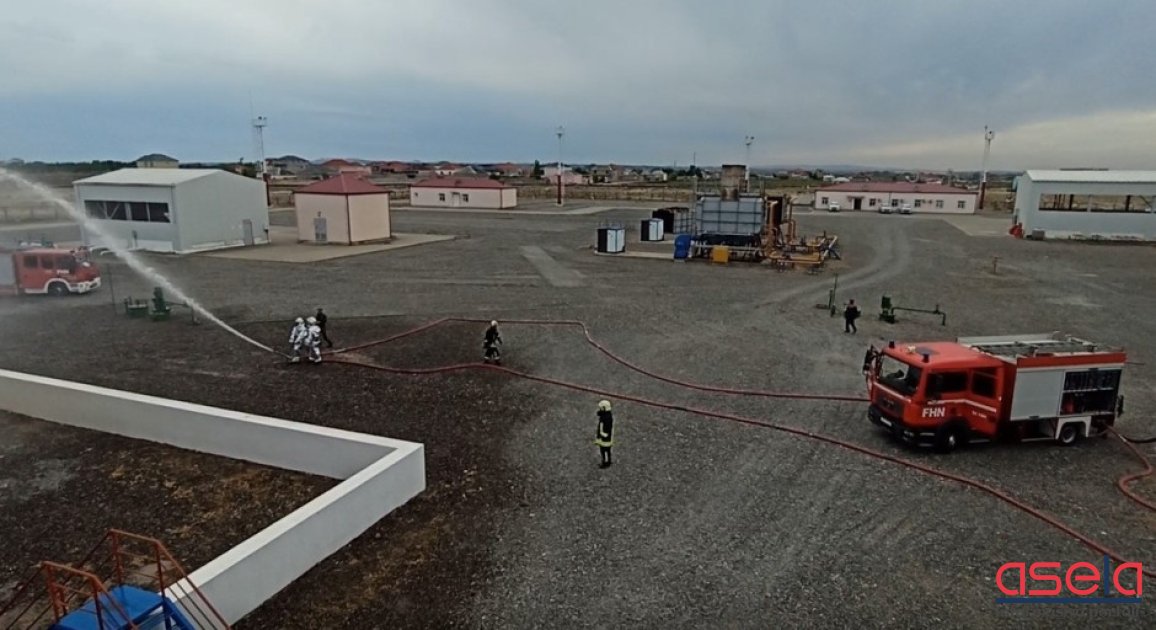 Təlim zamanı çənlər parkında baş vermiş şərti hadisə ilə əlaqədar müvafiq yerə operativ çatan yanğından mühafizə bölmələri “yanğın”ı qısa müddətdə “məhdudlaşdırılaraq söndürüb”.