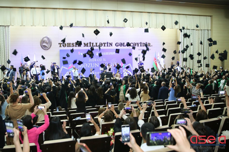 Daha sonra ali məktəbin kimya mühəndisliyi ixtisasının məzunu Faiq Əliyev çıxışında BANM-də peşəkar kadr kimi yetişdiyini, burada aldığı bilik və bacarıqların həyatının növbəti mərhələsində böyük rol oynayacağını bildirib. Eləcə də 2024-cü il məzun buraxılışı üzrə ali məktəbin birincisi - “İlin tələbə”si, kimya mühəndisliyi ixtisasının məzunu Aysu Zamanova adını fəxri kötüyə həkk edib. O, BANM-in məzunu olmaqdan qürur duyduğunu söyləyib, mütəxəssis kimi yetişməsində, bilik və bacarıqlarının formalaşmasında böyük əməyi olan fədakar müəllimlərə və valideyninə təşəkkür edib.