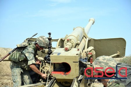 Artilleriya bölmələri ilə döyüş atışlı taktiki təlim keçirilir