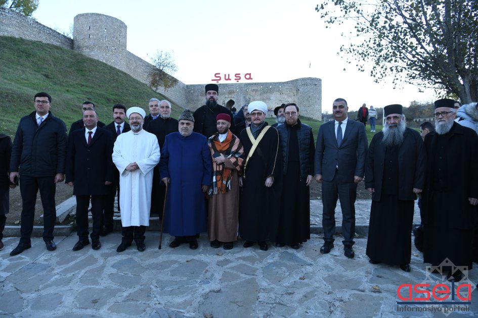 Dünya Dini Liderlərinin Qlobal Bakı Sammitinin iştirakçıları sonra Azərbaycanın tanınmış şəxsiyyətləri Bülbül, Xurşidbanu Natəvan və Üzeyir Hacıbəylinin güllələnmiş heykəllərinin yerləşdiyi Şuşa şəhər mərkəzi meydanı və qala divarları ilə tanış olublar. Qonaqlara Şuşa şəhərinin tarixi, işğal dövründəki vəziyyəti, şəhərdə Prezident İlham Əliyevin və Birinci vitse-prezident Mehriban xanım Əliyevanın birbaşa nəzarəti altında aparılan quruculuq işləri barədə məlumat verilib. Bildirilib ki, 30 ilə yaxın işğal dövründə Şuşa şəhərindəki tarixi binalar, məscidlər, abidələr erməni vandalizminə məruz qalıb. Şuşa işğaldan azad edildikdən sonra burada genişmiqyaslı bərpa-quruculuq işlərinə start verilib. İnfrastrukturun qurulması ilə yanaşı, Şuşada şəhərin əsl tarixi simasının, tarix və mədəniyyət abidələrinin bərpasına başlanılıb.