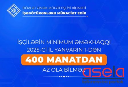 Sərəncama əsasən, Azərbaycanda minimum aylıq əməkhaqqının məbləği yanvarın 1-dən 400 manat müəyyən edilib.