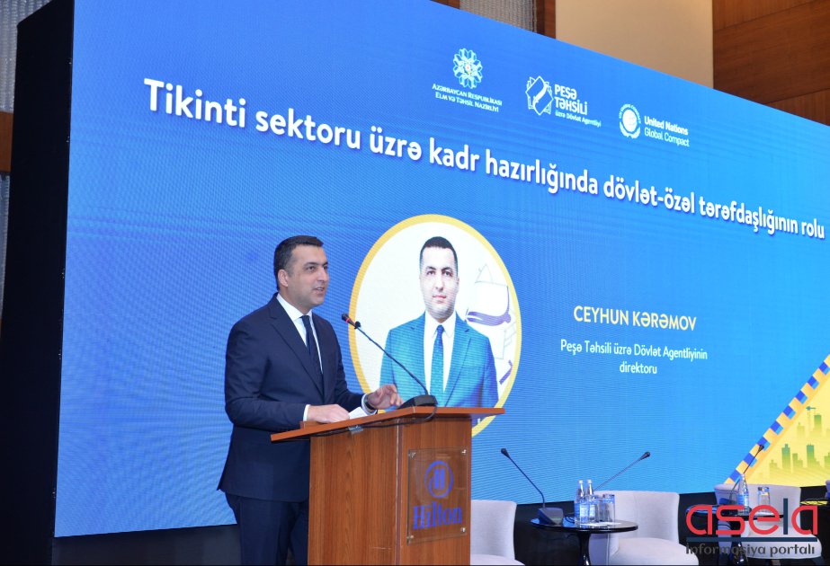 Bunu Peşə Təhsili üzrə Dövlət Agentliyinin direktoru Ceyhun Kərəmov “Tikinti sektoru üzrə kadr hazırlığında dövlət-özəl tərəfdaşlığının rolu” mövzusunda keçirilən tədbirdə deyib.