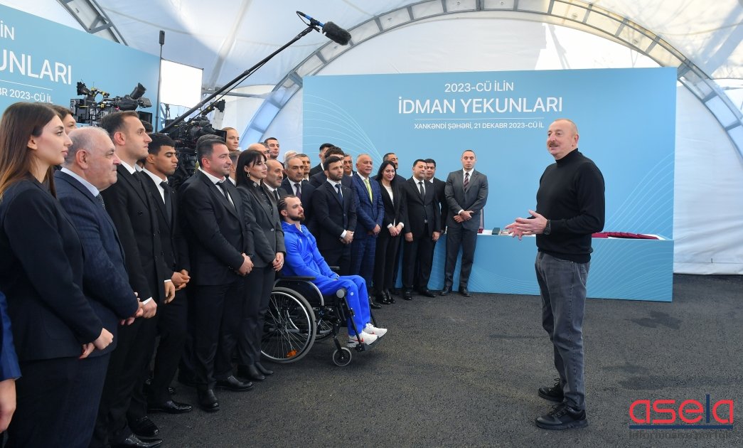 Dekabrın 21-də Xankəndi stadionunda futbol üzrə Azərbaycan Kubokunun 1/8 final mərhələsində Ağdamın “Qarabağ” və Bakının MOİK komandaları arasında keçirilən oyunun fasiləsində Azərbaycan Respublikasının Prezidenti İlham Əliyev 2023-cü ilin idman yekunları ilə bağlı təşkil olunmuş mərasimdə idman ictimaiyyətinin təltif edilmiş nümayəndələri ilə görüşüb.