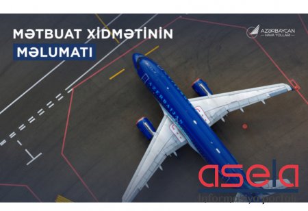 Bu barədə “Azərbaycan Hava Yolları” QSC-nin mətbuat xidmətindən məlumat verilib.