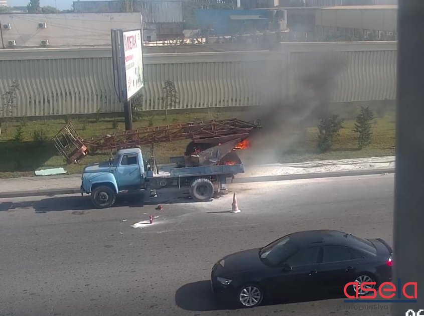 Paytaxtın Ziya Bünyadov prospekti, “Çermet” körpüsünün yaxınlığında nəqliyyat vasitəsində (qaldırıcı kran) yanğın baş verib.