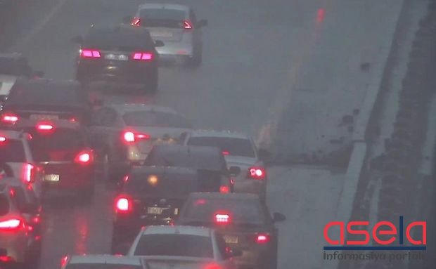 Bakıda körpünün üzərində yaranmış çökmə tıxaca səbəb olub.
