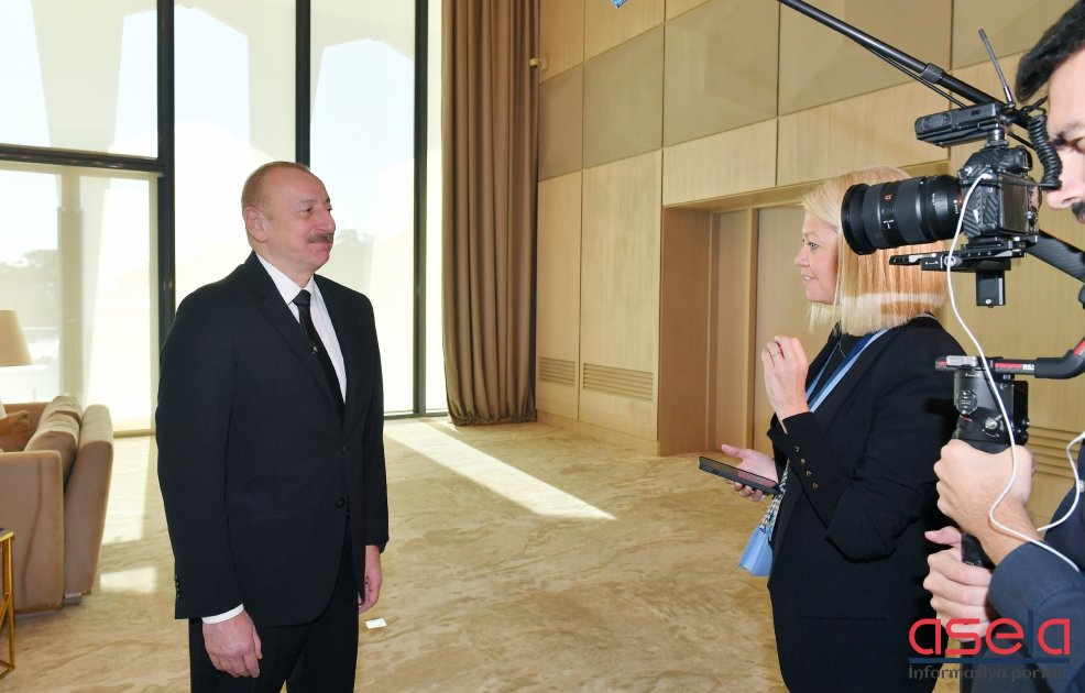 “Euronews”: Sizin çıxışınızda bir məqam xoşuma gəldi. Siz söylədiniz ki, neft və qaza malik ölkələr günahlandırılmamalıdır. Qazıntı yanacağına sahib olmaq onların günahı deyil. Siz söylədiniz ki, onlar ətraf mühitin mühafizəsi və yaşıl enerjiyə keçid məsələsi ilə necə məşğul olduqlarına görə qiymətləndirilməlidir. Siz həqiqətən də belə hesab edirsiniz, elə deyilmi?