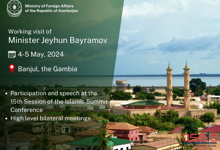 Xarici İşlər Nazirliyinin mətbuat xidməti idarəsindən bildiriblər ki, səfər çərçivəsində nazir Ceyhun Bayramovun mayın 4-5-də Bancul şəhərində keçiriləcək İslam Əməkdaşlıq Təşkilatının (İƏT) 15-ci İslam Sammitində iştirakı və çıxışı, habelə bir sıra yüksək səviyyəli rəsmilərlə ikitərəfli görüşlərinin keçirilməsi nəzərdə tutulur.