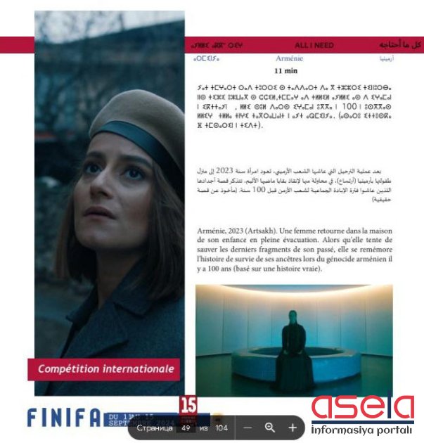 Bildirilib ki, sentyabrın 11-15-də Mərakeşin Agadir şəhərində keçirilən İssni Nurgh Beynəlxalq Amaziq film festivalı (Festival Issni N'ourgh International du Film Amazigh - FINIFA) çərçivəsində erməniəsilli Katia Spivakova Saakiantsın müəllifi olduğu 11 dəqiqəlik “All I need” filminin sentyabrın 13-də nümayişinin planlaşdırılması nəzərdə tutulmuşdu.