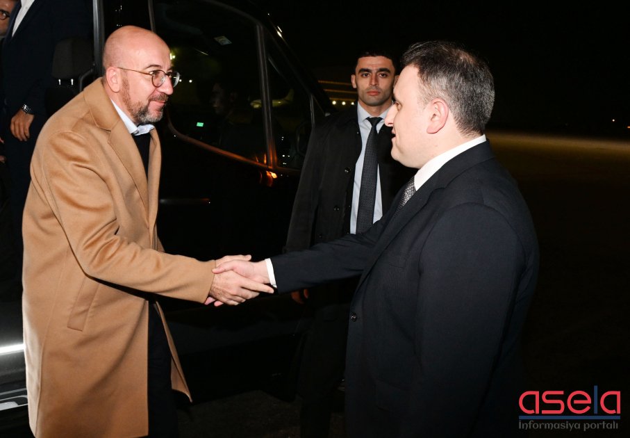 Heydər Əliyev Beynəlxalq Aeroportunda Şarl Mişeli Azərbaycan Respublikasının müdafiə sənayesi naziri Vüqar Mustafayev və digər rəsmi şəxslər qarşılayıblar.