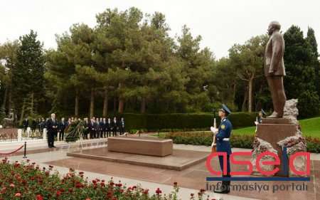 Prezident İlham Əliyev ulu öndərin məzarı önünə əklil qoyub.