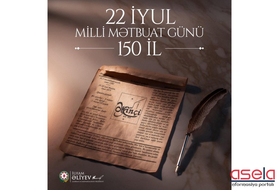Azərbaycan Respublikasının Prezidenti İlham Əliyev rəsmi sosial şəbəkə səhifələrində 22 İyul - Milli Mətbuat Günü münasibətilə paylaşım edib.
