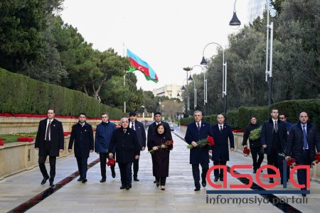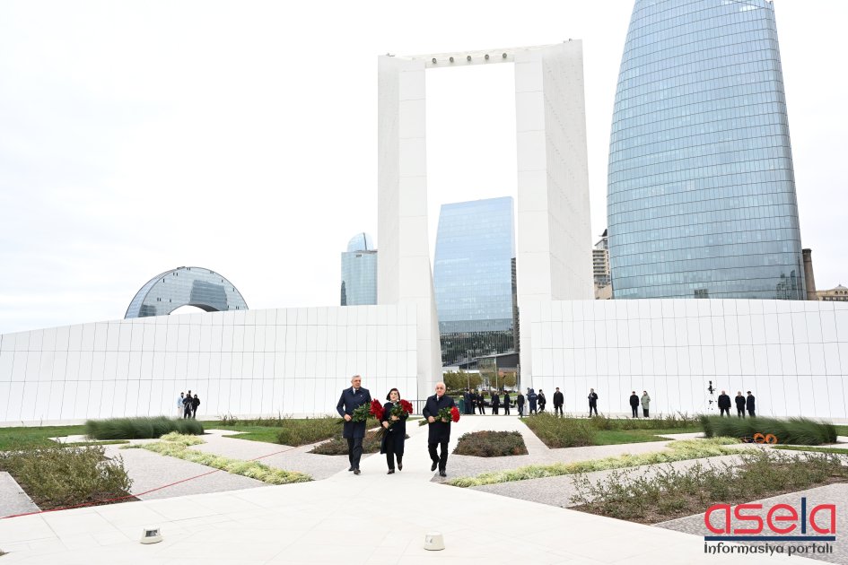 Dövlət və hökumət rəsmiləri xatirə daşının önünə gül dəstələri düzərək şəhidlərin əziz xatirəsini ehtiramla anıblar.
