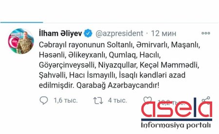 • Talış kəndi ətrafındakı əlverişli yüksəkliklər düşməndən təmizlənib.