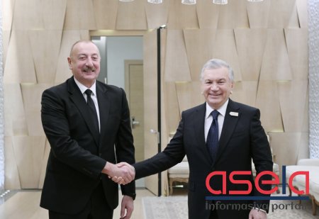 Azərbaycan Prezidenti İlham Əliyev Özbəkistan Prezidenti Şavkat Mirziyoyev ilə görüşüb Görüşdə Xankəndidə tikiş fabrikinin videobağlantı vasitəsilə açılışı olub YENİLƏNİB