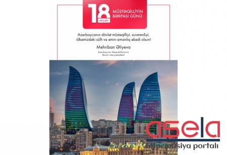 Birinci vitse-prezident Mehriban Əliyeva Müstəqilliyin Bərpası Günü ilə bağlı paylaşım edib