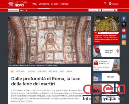 Vatikan mediası Birinci vitse-prezident Mehriban Əliyevanın iştirakı ilə Kommodilla katakombalarının bərpası layihəsinin açılışından yazır